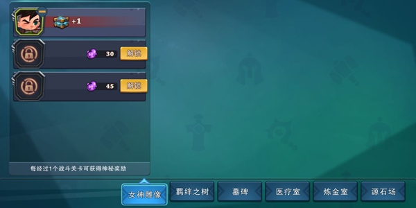 注意一点就是如果佣兵死了,就不能在原先分配得位置上继续获得收益(矿场,商店,女神,羁绊),在治疗室中的佣兵将自动下阵休息。每个佣兵在科技中只能占据一个位置(即如果你将在治疗室中的佣兵用在羁绊之树上了,若经历一次战斗后就不会回复其生命值,只有在治疗室的佣兵才能在经历战斗后回血,此外上阵的佣兵也可以占据除了治疗室,墓碑以外的科技位置)。