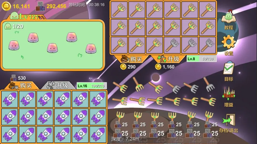3、养殖史莱姆,史莱姆可以开采各种各样的矿物,用来建造建筑,也可以出售。