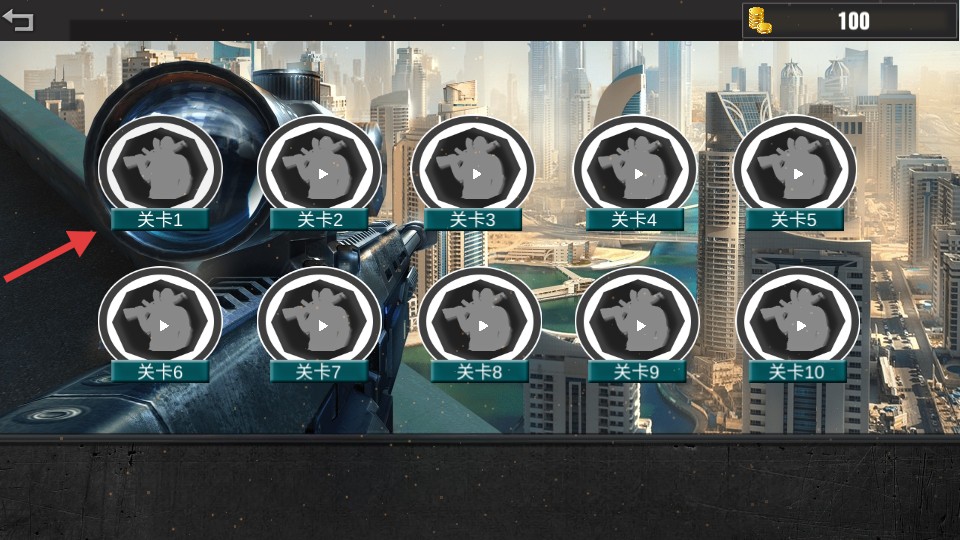 2、选择【关卡1】启动,完成任务解锁后续关卡,积累金币,逐步提升角色与武器,挑战更高难度关卡。