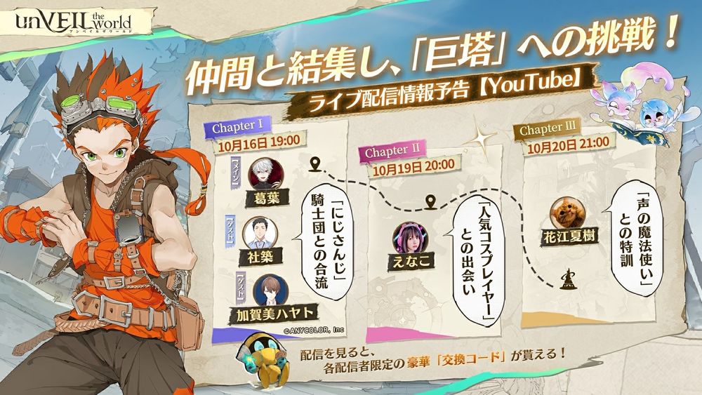 为纪念本作正式上线,官方邀请了各种类型的实况主直播游玩《unVEIL the world》。直播主包含隶属于彩虹社的 VTuber・葛叶、社筑、加贺美隼人,Cosplayer 的 Enako,声优花江夏树等来自各个业界的热门创作者。
