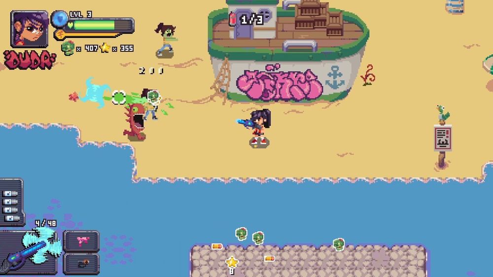《僵尸街区:涂鸦特工队》是一款灵感来自经典俯视角动作游戏的合作射击作品,融合浓厚的街头文化风格、幽默感与像素美术,并以巴西城郊文化作为视觉与氛围基础。玩家将化身为涂鸦英雄,在僵尸肆虐的城市中奋战,透过涂鸦佔领系统夺回街区、解放城市。官方强调,涂鸦不只是视觉表现,更是游戏进程的核心机制,透过在场景中绘製涂鸦,玩家可以解锁新的路线、挑战与探索机会,推动整体关卡进展。